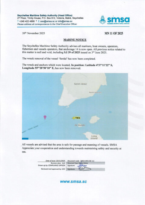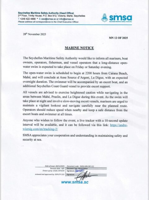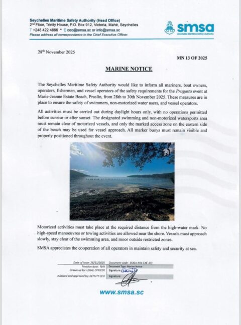 SMSA is a regulatory and supervisory body within the Ministry of Transport with its primary objective being to ensure that all mariners without exception, use and enjoy the seas of Seychelles and other water bodies, in a safe and lawful manner. SMSA is also responsible for ensuring maritime security and pollution prevention.
